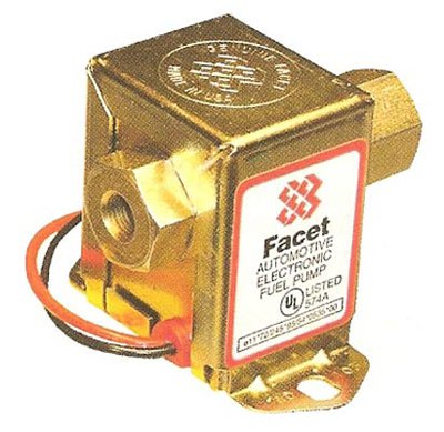Bomba Gasolina Facet; Circuito electronico, Conduccion normal, Negativo a masa, 12v, presion 4.0-4.5, 18 galones, potencia >150.