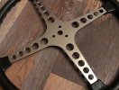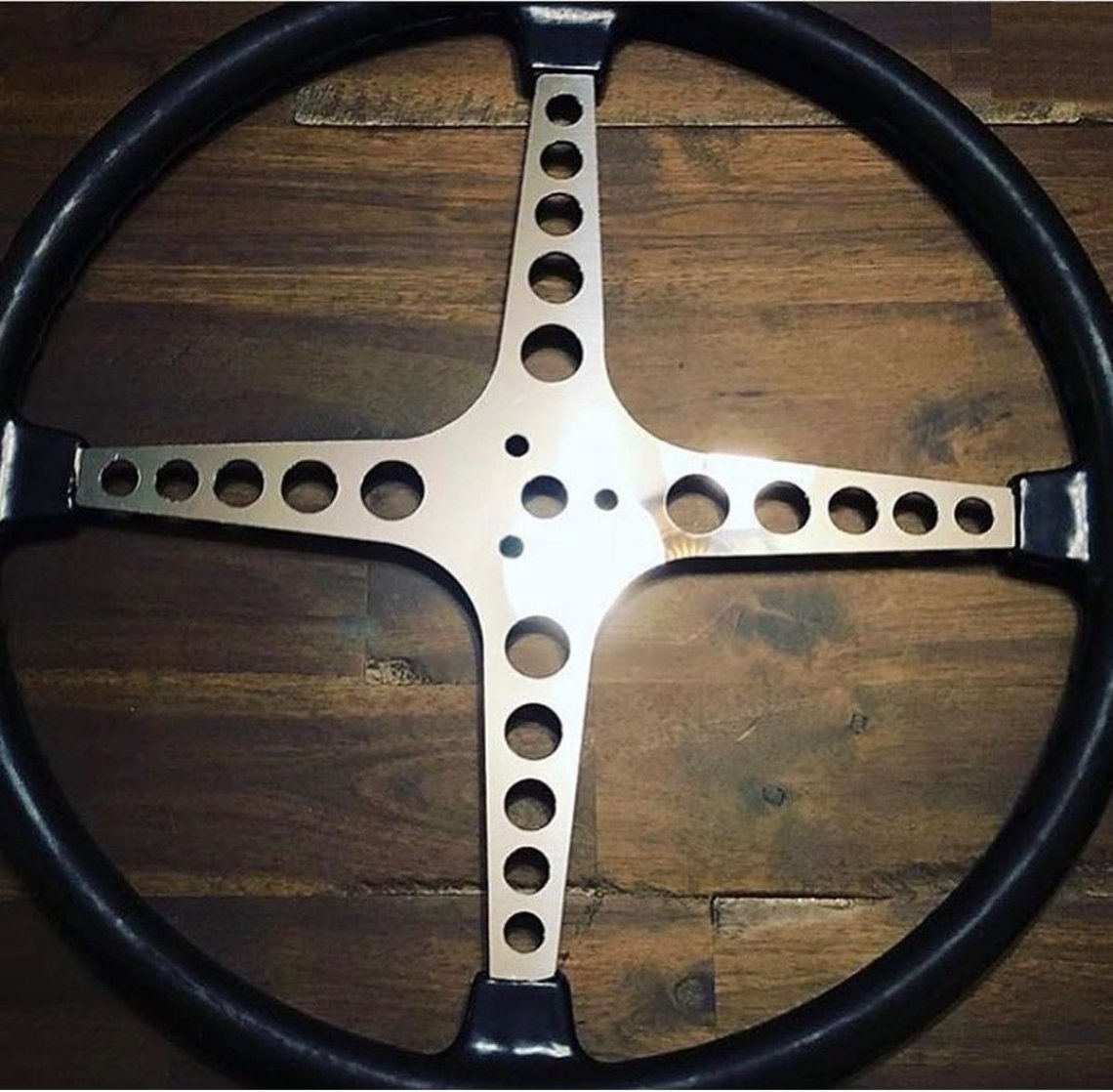HOT ROD 17" Four Spoke, Black Grip, Polished Stainless Center, 3 bolt, Holed spokes. This "Hot Rod" wheel comes with the Industry standard 3 bolt mounting pattern. Center hole is .625 (5/8") Back side of steering wheel is Sand finished. Outside to outside measures 17.5" (44.50cm)