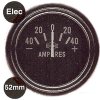 Reloj amperimetro electronico, 52 mm de diametro. Se suministra con el aro biselado en negro o aro biselado cromado. Calibrado -40 + 40 y -60 + 60
