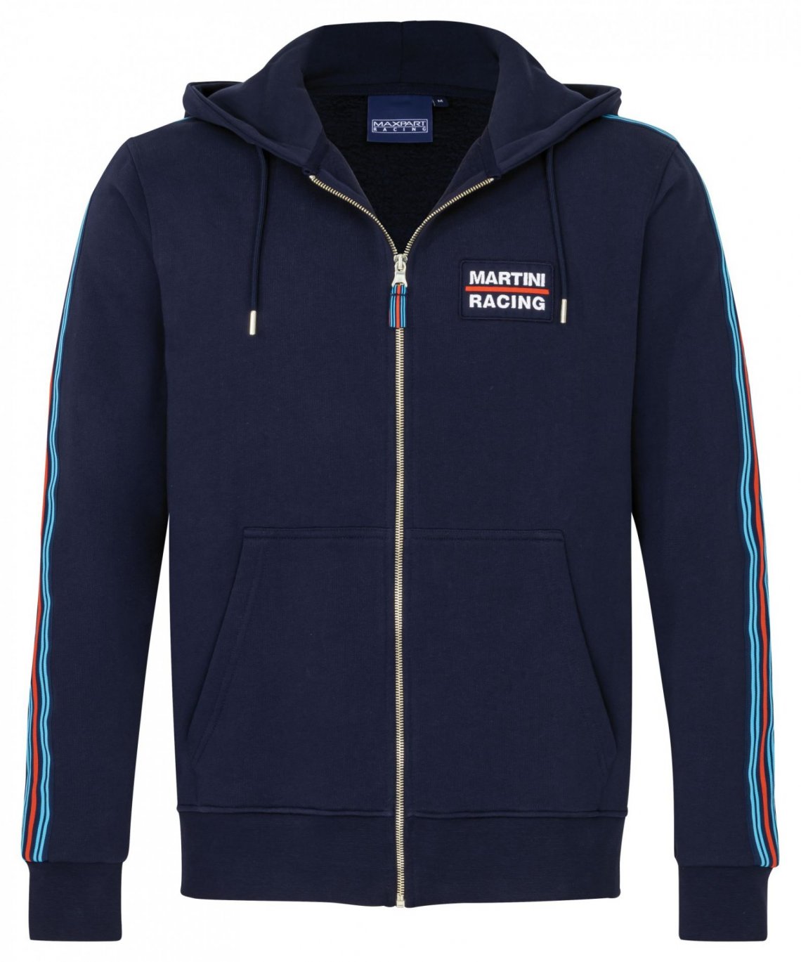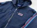 Sudadera clásica confeccionada en 100% algodón con cremallera completa. Rayas MARTINI RACING tejidas en las mangas, logotipo estampado en la espalda. Parche bordado original MARTINI RACING en el pecho, etiqueta tejida con rayas Martini en el tirador de la cremallera.