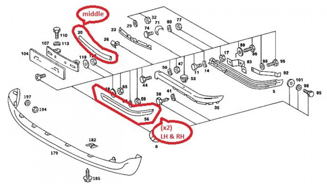 Juego gomas paragolpes delantero Mercedes W107